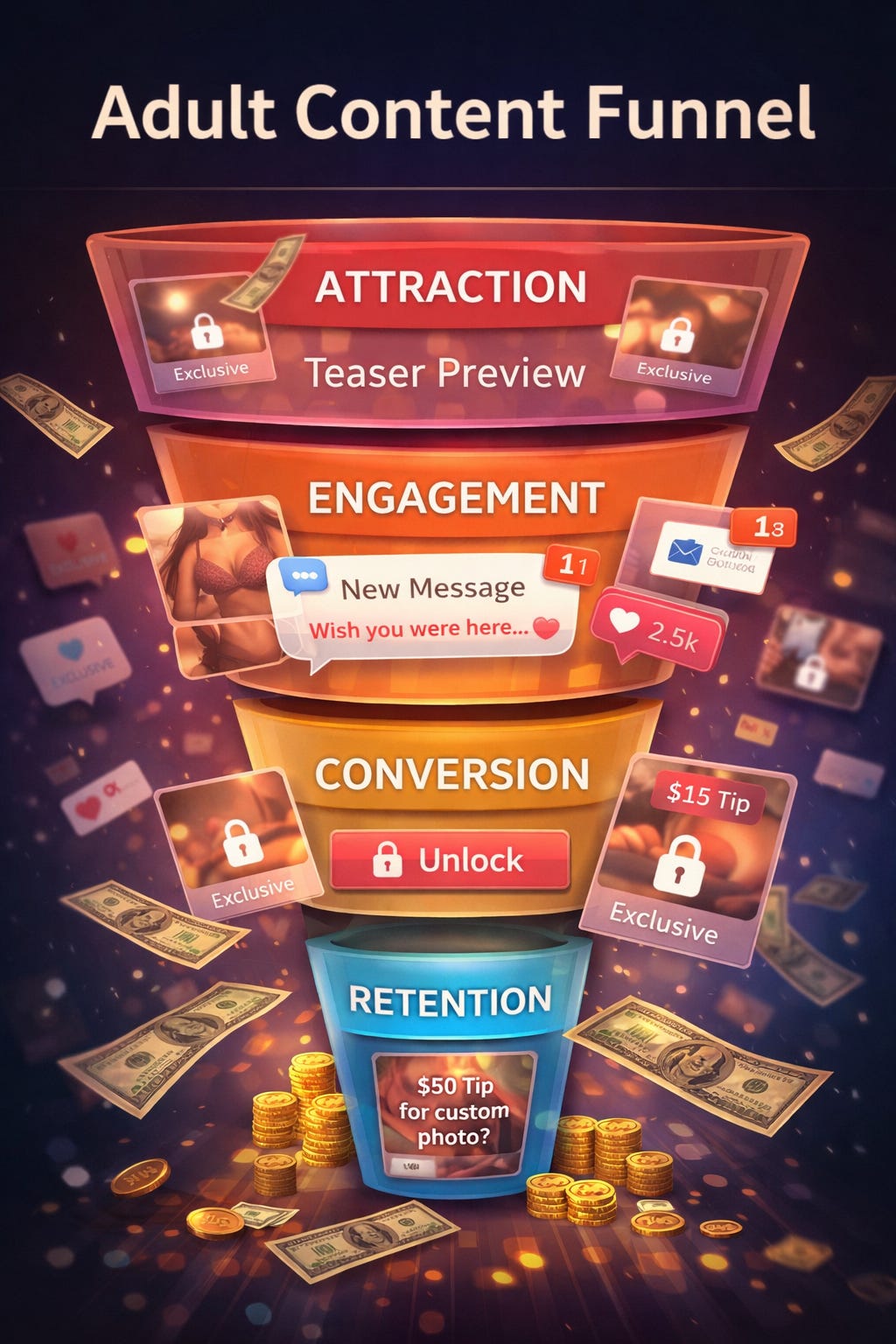 Platforms like OnlyFans and Pornhub have operationalized this model into a system that is deceptively simple on the front end and extraordinarily complex beneath the surface: you are given a glimpse, a teaser, a blurred image, a suggestive caption, a message that feels personal, and from that moment forward you are no longer navigating a website, you are moving through a funnel designed to escalate your level of engagement step by step, from curiosity to interaction, from interaction to transaction, and from transaction to repetition.